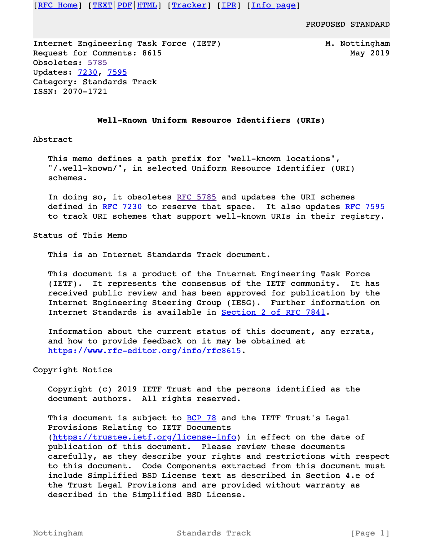 RFC 8615 - Well-Known Uniform Resource Identifiers (URIs)